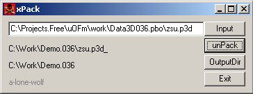 Installation: copy 'xPack.exe' into any your working subdir (sorry, no CFG file is created to remember settings; the registry is not changed).