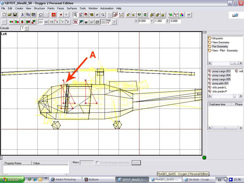 Hint: Glass Component must be modeled in a separate O2 LOD and not in the Fire Geometry LOD. What I normally do is place the model in LOD 0.000 and in the next LOD 1.000 I make my glass as I have a background LOD (Yellow line image) to work off.
