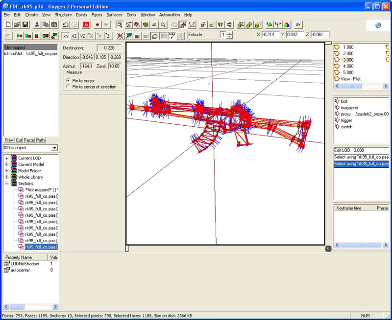 Often after this operation number of sections displayed doesn't want to update right away, so we go into another LOD and then come back to editing same LOD. After this small detour however finally our model is where we want it to be - one section for muzzle flash and one for whole weapon LOD and now ArmA engine can render whole weapon using single Direct3D call which makes modern GPUs very happy.