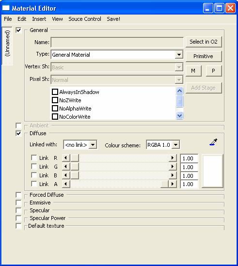 So let's make a metal material for example. We need to define the Ambient, the Diffuse, the Force Diffuse, the Emissive, the Specular, the Specular Power and the two stages.