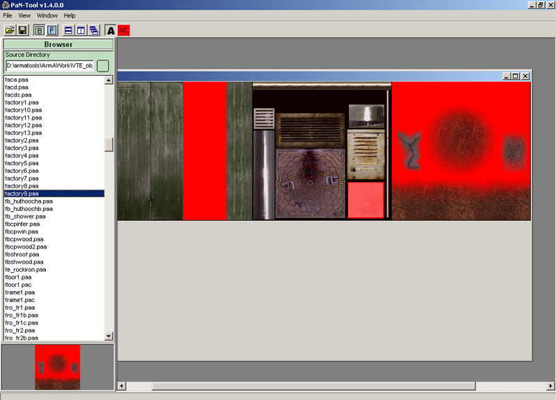 Merging textures is done easily by using PAnTool and OFP O2. What you do is create one big merged texture in pantool and then use O2 to change the p3d model. More of this below…