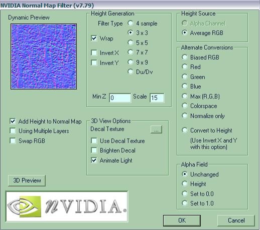 A new tab will come up, the NormMap filter interface: configure it as in the image below: