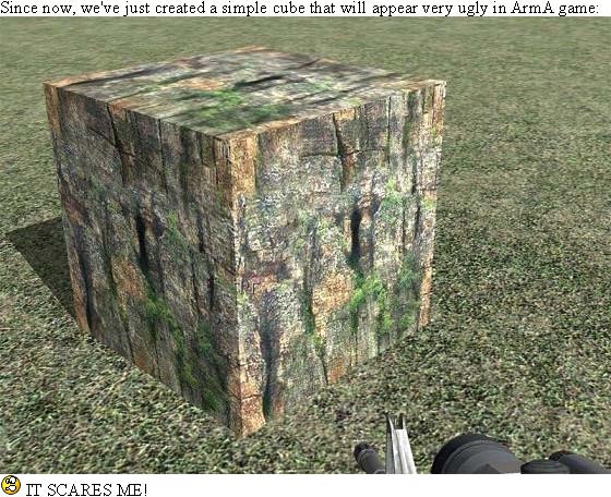 Point 5: Well, we created a very simple model (indeed for a tutorial we don't need a UBER 30000 poly one) Cut and paste it into the BOX folder (as for texture tex1_co.paa).