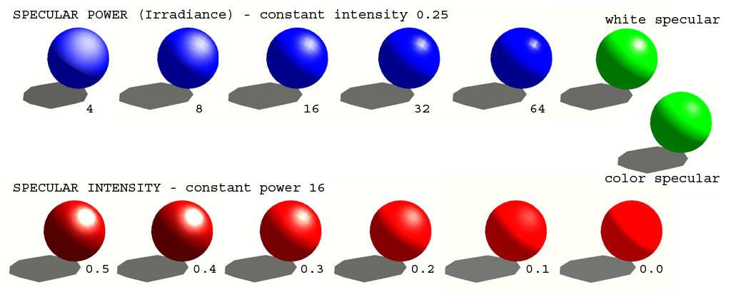 All above mentioned settings can be calculated in some shaders per pixel using effect bitmaps. All components are together used in calculation of surface shading: