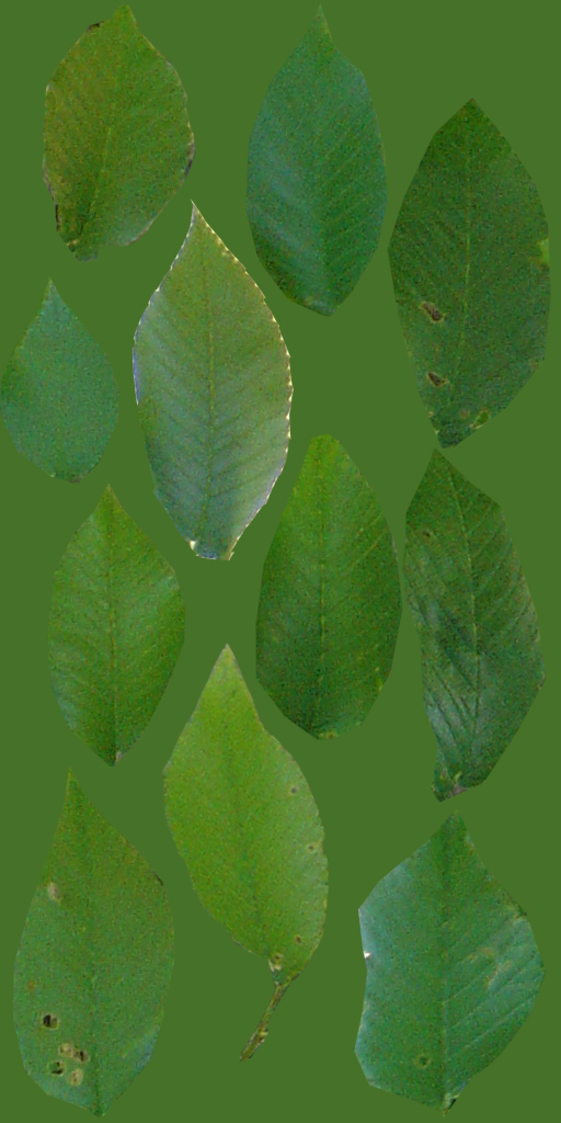I've basically cut out some leaves from photos, made a quick normal and specular map for them and UV mapped them onto the same model, then made alterations to each model to give them some variation. Name the leaves, 'leaf_high' and add them to the 'Control Meshes' layer, then make instances of them and add them to the 'HighPolyLeaves' layer. You can use the control meshes to swap out leaves and twigs to change the type of tree.