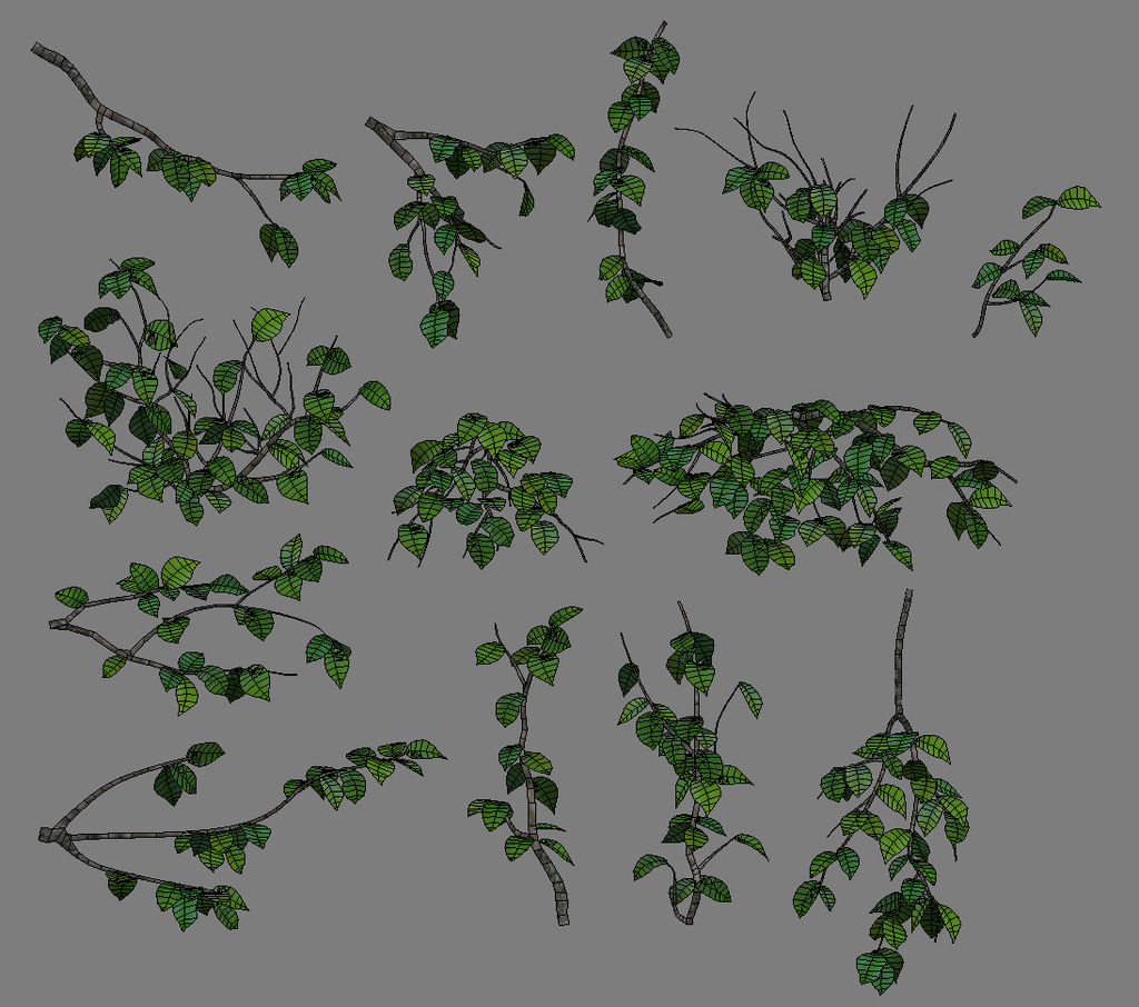 In the image above you can see the pieces that will be rendered to texture for the high level of detail, make sure you have a good variation of branches for different situations much like in step 1.2.
