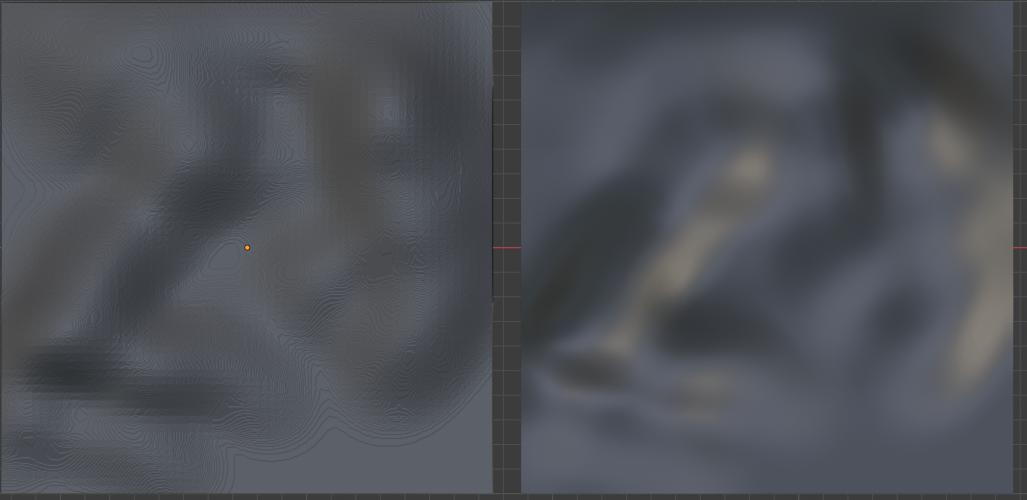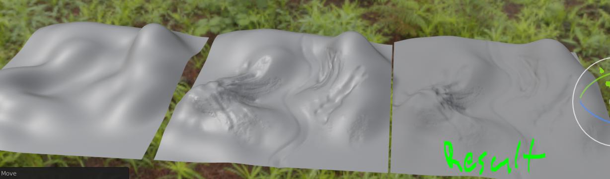 This being the basic idea of terrain normal map, it fakes in detail and data that the terrain itself cant hold. Now it is also not only just ground shape details like what I did here now, its also related to objects and ground types.