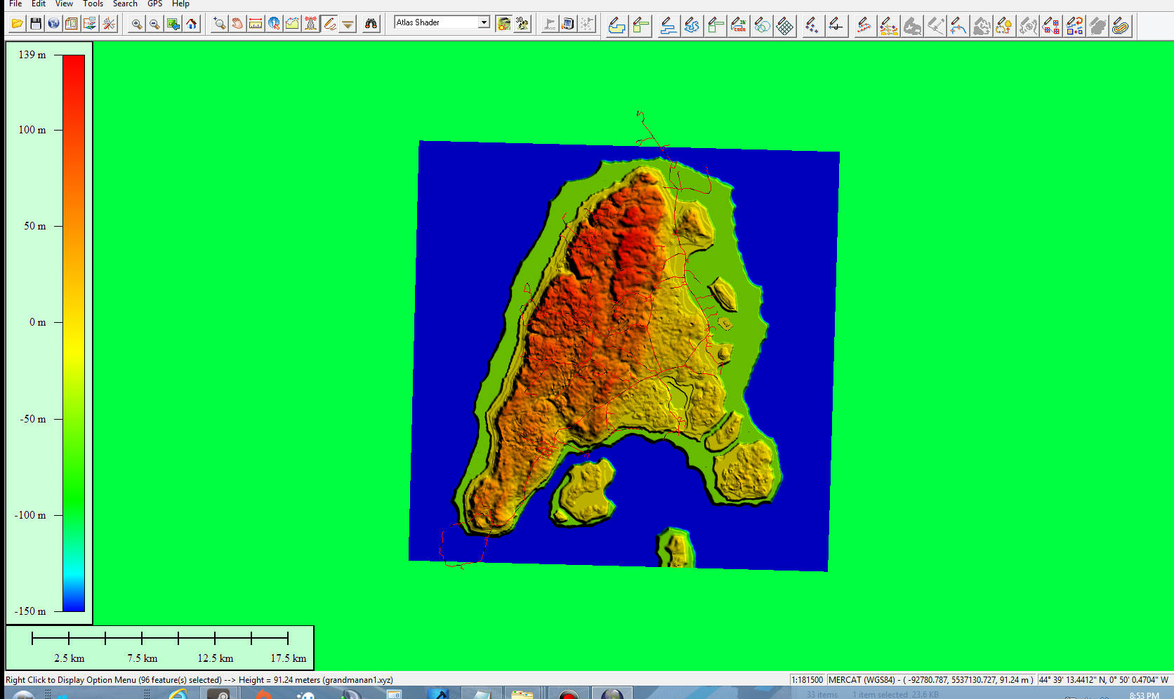 But since the real grandmanan is about 30 miles long and my height map is 2048 by 10 meter grid cells the road network will be way bigger.