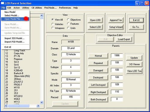 Now do the same for the Append/Select LOD the menu will ask you to locate the LOD file of your model on your hard drive and after that some distance view information. I am not sure what these numbers really mean so I follow Maddog's advice and type in the number 10000 and click OK