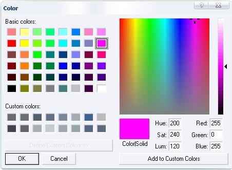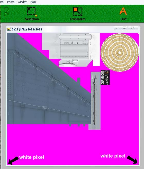 Sometimes an area needs to be transparent. Before the arrival of the DDS format we used the color magenta. See the following picture for the right numbers for the color magenta. Magenta is Red 255, Green 0, Blue 255.