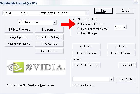 Select the Generate MIP maps option.