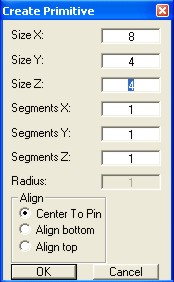 - Set the Size X to 8, Size Y & Z to 4. Click OK.