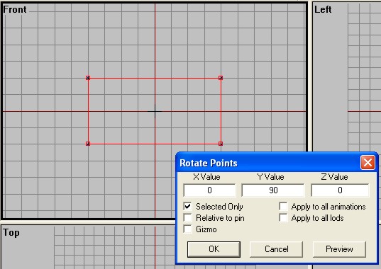 - Go to “Point→Transform 3d→Rotate..”. A dialog pops up. Enter 90 for the Y value and hit OK.