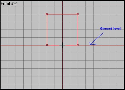 Ok, now have a look at the 3D view. Look at the grid and you`ll notice that the crate`s center is at the Origo. Also that half of the crate is below the grid. This is bad, because on simple objects like this OFP uses the grid as the ground level. So unless we want the crate half-buried into the ground we must move it upwards: