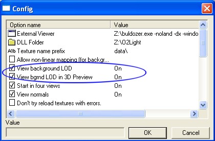 - First make sure that “View background LOD” and “View bgrnd LOD in 3d preview” under “File-Options” is turned on.