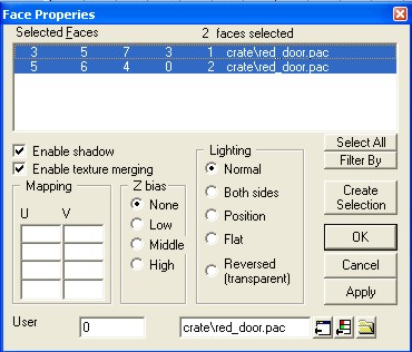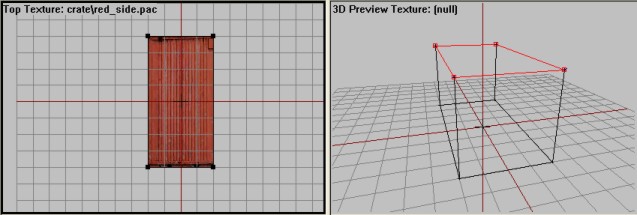 Now you must do the same thing to the back of the crate. The red_door texture is to be applied there too. Here is what to do: