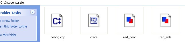 - Have a look at your crate-folder. It should contain crate.p3d, the two textures and your config file.
