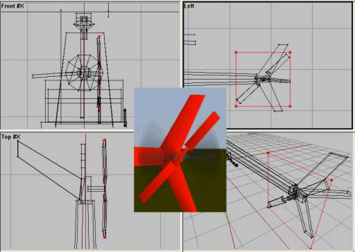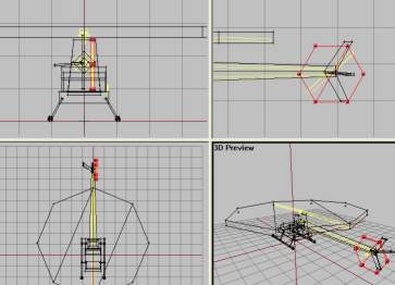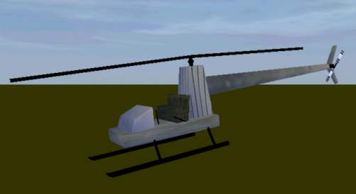 So lets have a look at our model. As Ive told earlier, this is a VERY simple model and Im not wasting valuable 3d model time making an accurate 3d model of a heli for this simple lesson. So I just stripped the model from lesson 2 for wheels and spolders, added a tail section, skids and rotors. Also some changes to the geometry LOD to go with the new model in the main LOD: