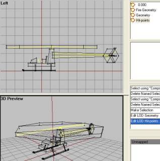 Now we must make some named selections or this LOD will have little use. Simply we tell ofp like what part is the engine, what is the main rotor, etc by selecting structures and creating named selections for them. There are lots of named selections that can be used in this LOD, but we will just consentrate on the most common ones: