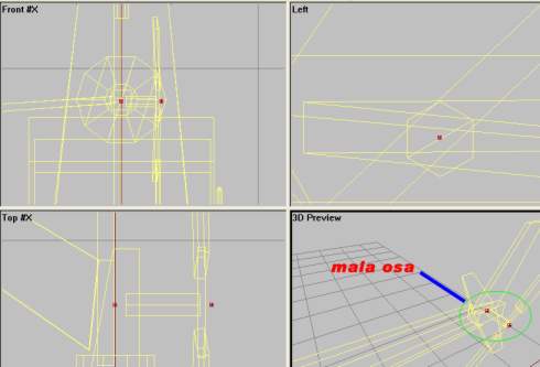 - Same for the main rotor axis, “velka osa”. Two vertrices placed directly on top of each other in sideview and in the center of the actual helicopter model`s rotorshaft. Like this: