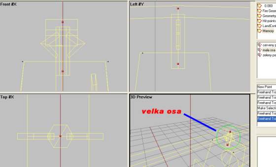 In adition to having a Fire Geo LOD for knowing when the model is hit by gun fire, the ofp engine is capable of knowing WHAT parts are hit. It is the fueltank? The engine? That way we can have more realistic damages for our model. But how will the structures in HitPoints LOD look like? As you may think, it should be similar or near identical to the ones in the Fire Geometry. Usually addon makers have some differencen between the stuctures in Fire Geo and Hitpoints LOD, but its not important for this lesson. So we will just use structures from our Fire Geo LOD and make some new named selections. Lets move: