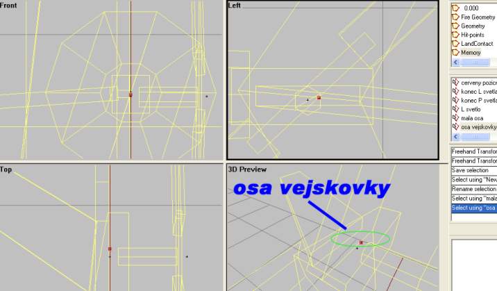 - Axis for the horizontal stabilizator, named “osa vejskovky”, is just a single vertex placed like in this, in the center of the model in the tail section. Insert it from sideview to make it appear in the center when viewed from frontview.
