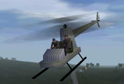 Ok, then. Ready to fly it? Then just fire up PBOTool, compress the folder and save it as “firstheli.pbo” in your OFP Addon folder. You`ll find it under Empty→Air→“My First heli” in the editor. Go on and test it, both in the day and night to see if the lights work properly. Here are some shots of it ingame: