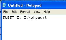 With this file (a BAT file works like an EXE file, you click on it and it executes the commands), a “fake” Z:\ drive will appear in “My Computer” . Dont worry, your harddrive is not messed up. Its just so that windows thinks that the folder it points to is a root drive (which is really not true, its on C.\ofpedit). Think of that fake Z:\ drive as a shortcut to that folder. Also, windows loose the fake Z-drive each time windows restarts, so you need to execute this bat file each time you turn on your computer. That is why many people put this one in their “startup folder” for windows, but you`ll make that one out yourself. (NOTE: If you already have a Z:\ drive and the Z is already taken , you might wanna write another letter. Just pick one and remember that whenever you see a Z: for the rest of the lesson, write your letter instead).