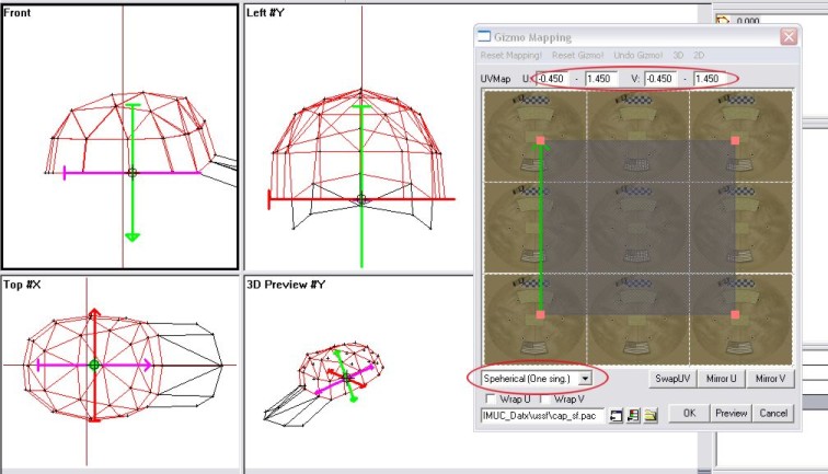 At best we map the whole cap in one operation. Here, Spherical Gizmo Mapping comes into play which is option two…
