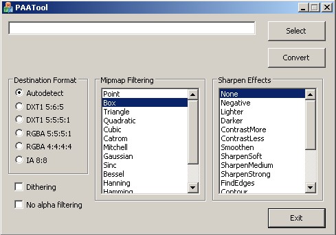 Converts TGA textures to Operation Flashpoint PAA format.